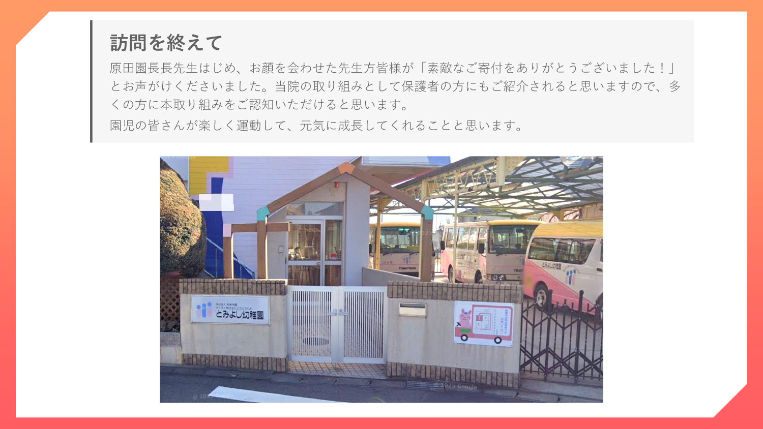 とみよし幼稚園への寄付