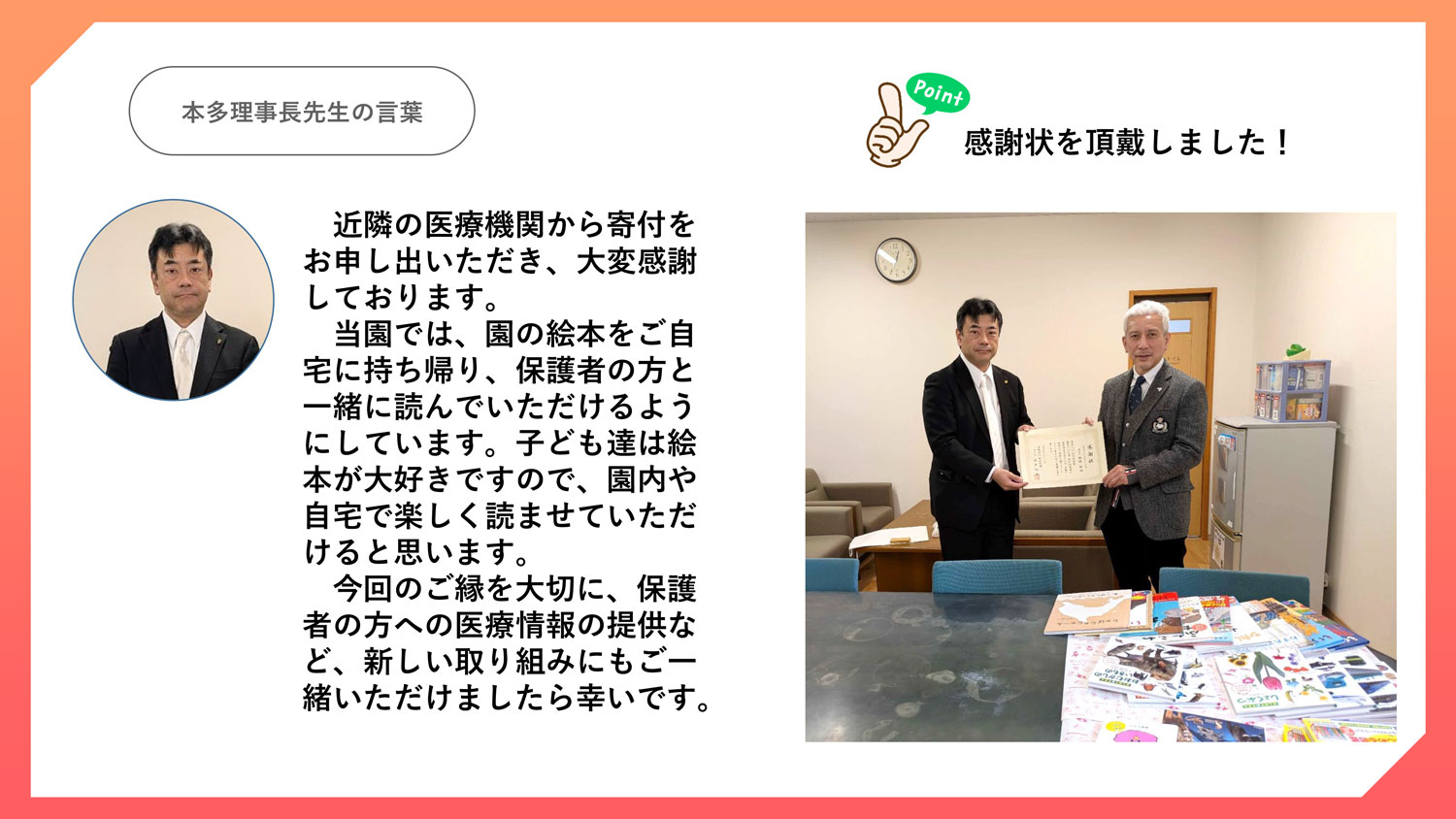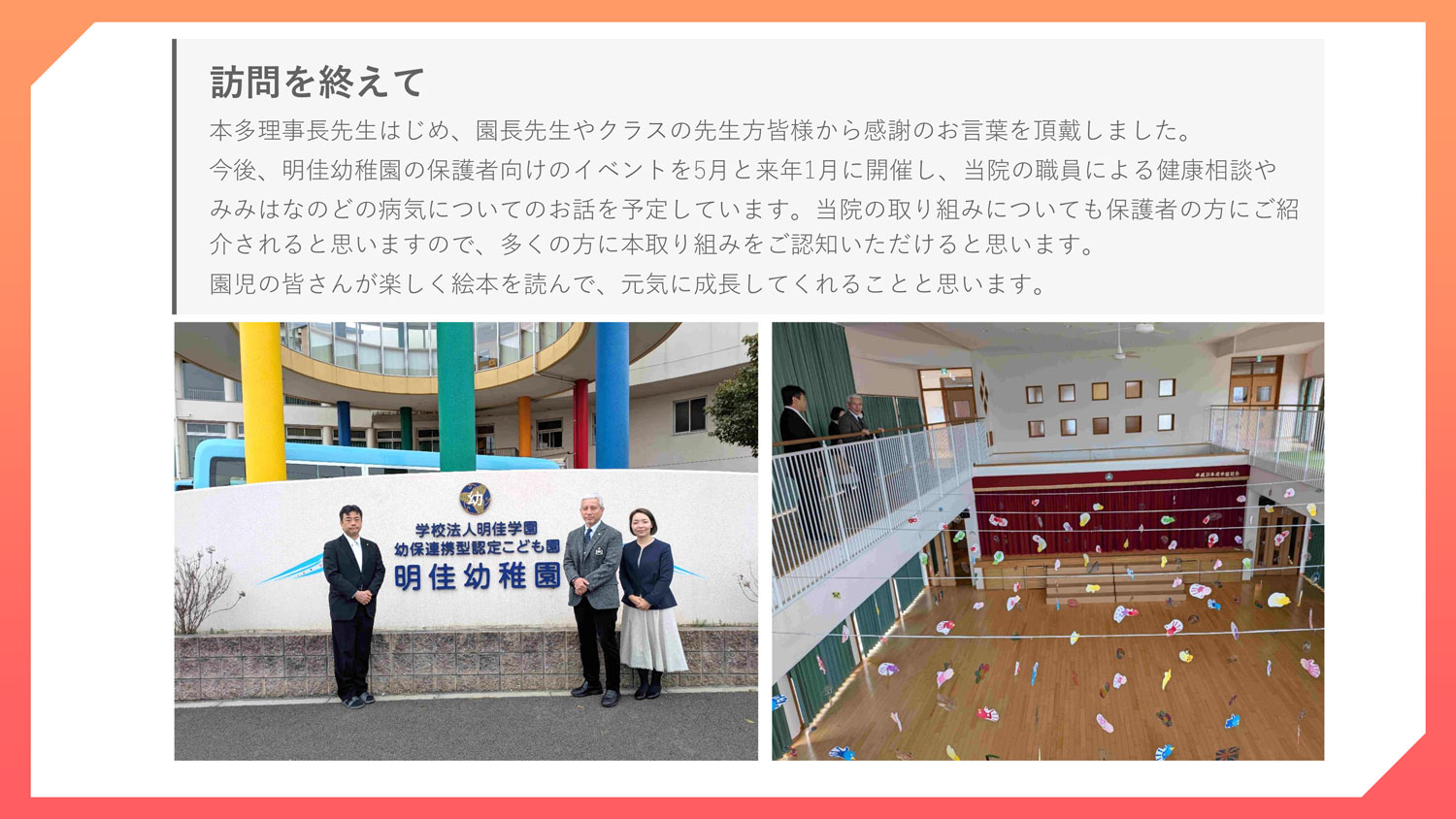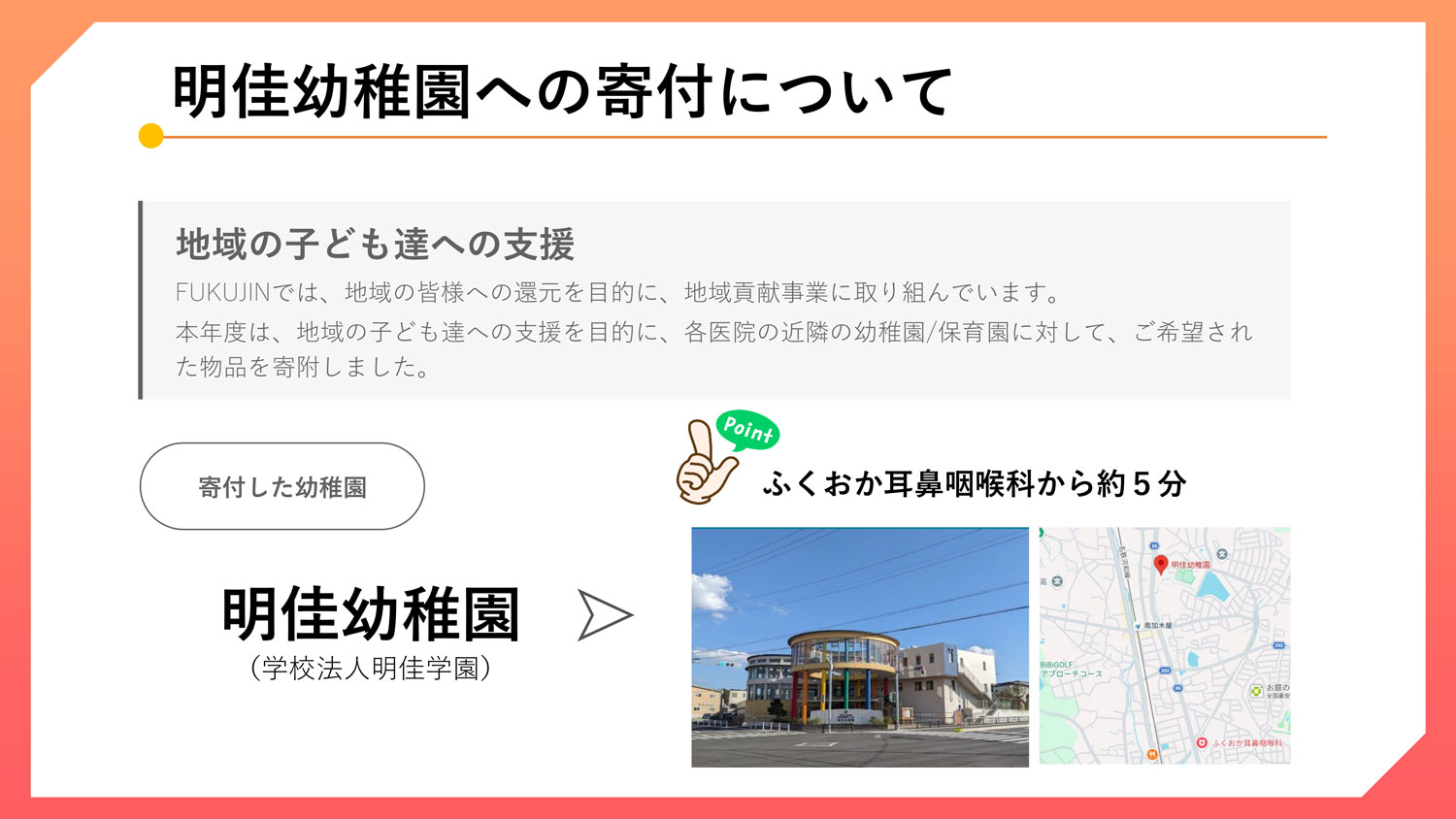 明佳幼稚園への寄付
