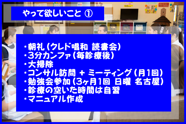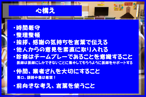 当院は、働くだけの場所ではなく、人として成長ができる場所にしていきたいと思っております。